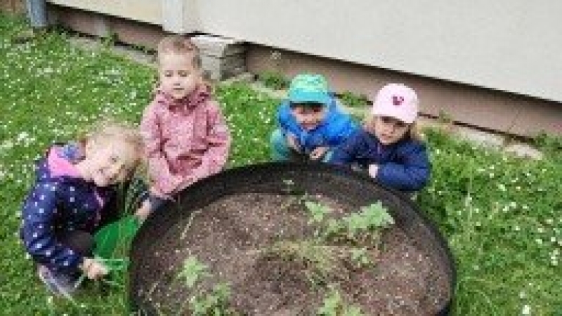 V měsíci květnu a červnu nás počasí zkoušelo jak jsme připraveni na pobyt venku. Mohli jsme si vyzkoušet gumáky, pláštěnky a hlavně radost z měření kaluží. Zasadili jsme do záhonku vypěstovanou slunečnici a pravidelně se o ní starali, zaléváním a pletím plevelu. Pohybové aktivity na školní zahradě byly plné elánu. Ve třídě k nám přibyla nová kamarádka Fanynka. Nezapomněli jsme ani na kulturu divadelním představením Bobři od Bobří řeky.